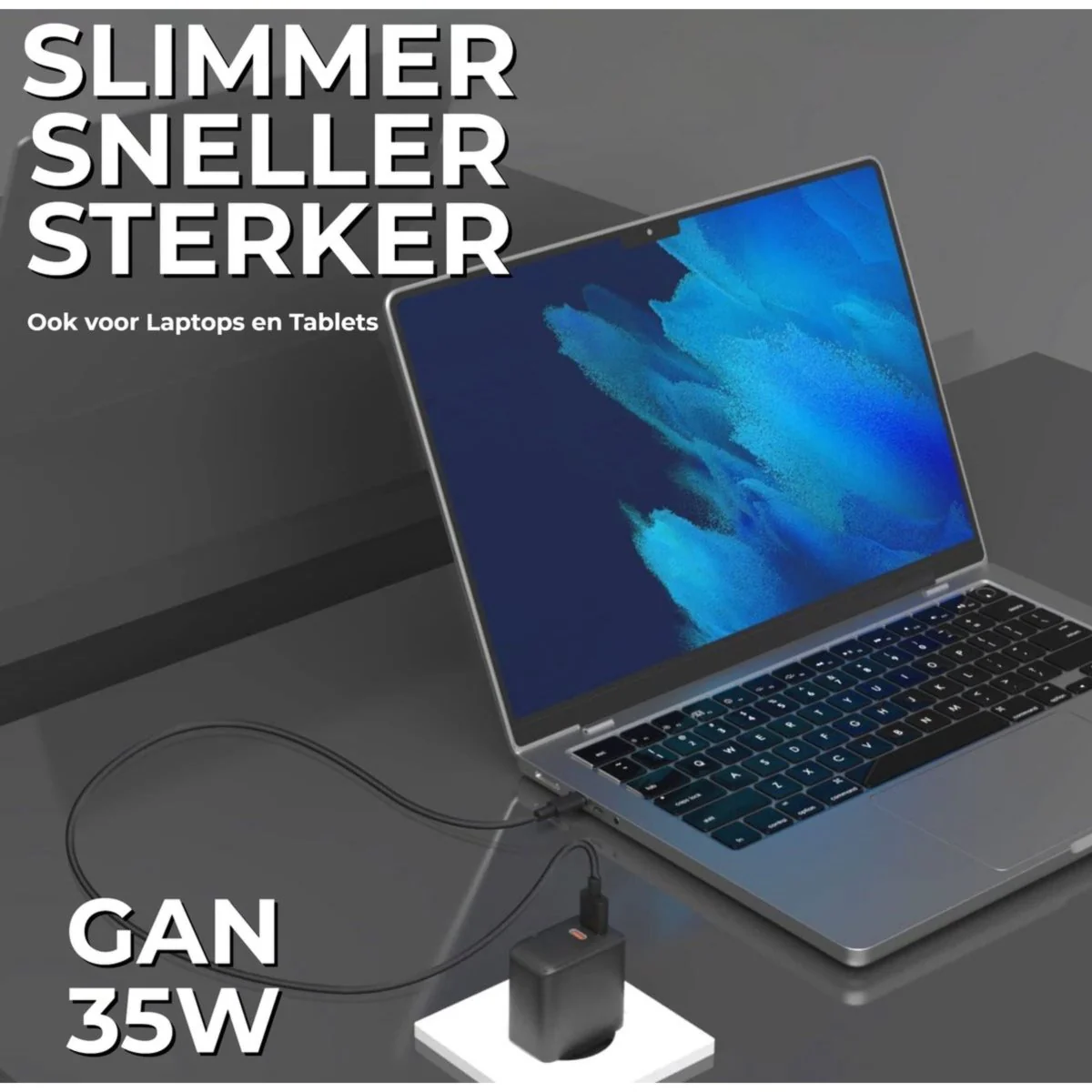 Wil je je apparaat snel opladen met dubbele bruikbaarheid en voldoende kabellengte? Dan is de 35W Dual USB-C Snellader met 2x USB-C naar USB-C kabel 3 meter van Phreeze precies wat je zoekt. Deze snellader wordt geleverd met niet één, maar twee zwart gevlochten USB-C naar USB-C kabels, elk met een royale lengte van 3 meter. Speciaal geformuleerd voor de Samsung Galaxy S23 Ultra of Tab A8 2022, laadt deze krachtige lader je apparaat in no-time op. Ontdek het spectrum aan voordelen en functies van deze geavanceerde 35W snellader.