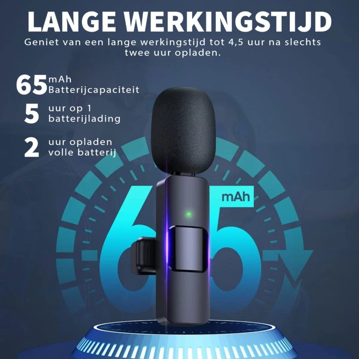 - Oplaadbare zender en ontvanger: Geniet van een lange werkingstijd tot 4,5 uur na slechts twee uur opladen.