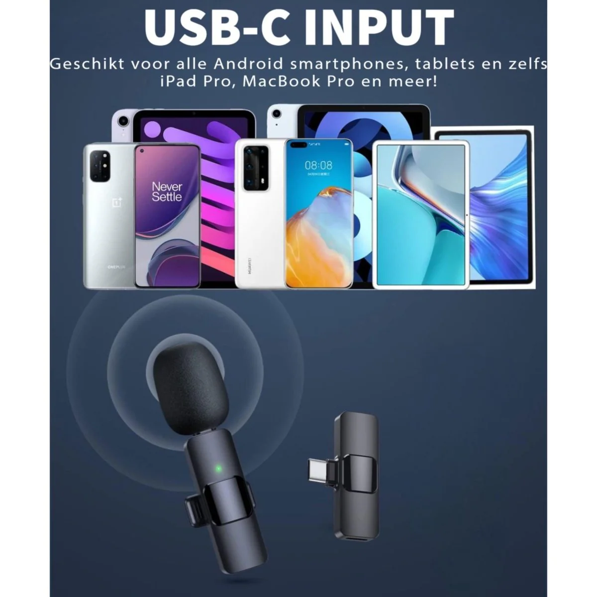 We hebben ervoor gezorgd dat de Professionele Draadloze Microfoon – Omnidirectioneel toekomstbestendig is. Dankzij de bijgeleverde USB-C (Android) aansluiting is deze microfoon compatibel met een breed scala aan apparaten. Of je nu een Samsung Galaxy S23 Ultra, Z Fold 4, Z Flip 4, een budgetvriendelijke A54, een iPad Pro of een MacBook Pro of Air gebruikt, onze draadloze lavalier microfoon werkt naadloos met jouw apparaat. Het ondersteunt alles van Android-smartphones tot laptops en pc’s. De handheld microfoon is geschikt voor uiteenlopende toepassingen, zoals interviews, online conferenties, podcasts, vlogs en livestreaming.