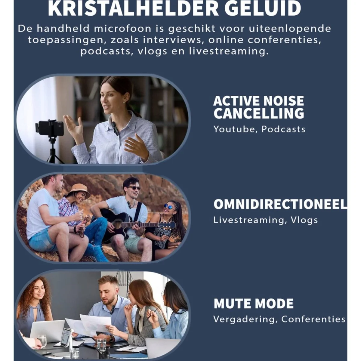 - Volledige compatibiliteit: Werkt met Android-smartphones, laptops, pc’s, etc. Perfect voor interviews, online conferenties, podcasts, vlogs, live streaming.