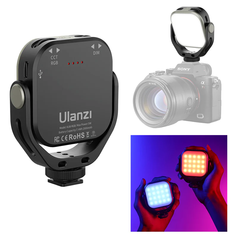 Met 20 RGB LED’s en een 360° volledig RGB-kleurspectrum biedt de Ulanzi VL66 een breed scala aan kleuropties. Of je nu een dramatisch effect wilt creëren met stroboscoopverlichting of een zachte achtergrondkleur nodig hebt, deze lamp heeft het allemaal. De verschillende verlichtingsmodi, inclusief een RGB-kleurmodus, CCT-modus, en Scènemodus met vooringestelde effecten, geven je de creatieve vrijheid om elke scène perfect te belichten.