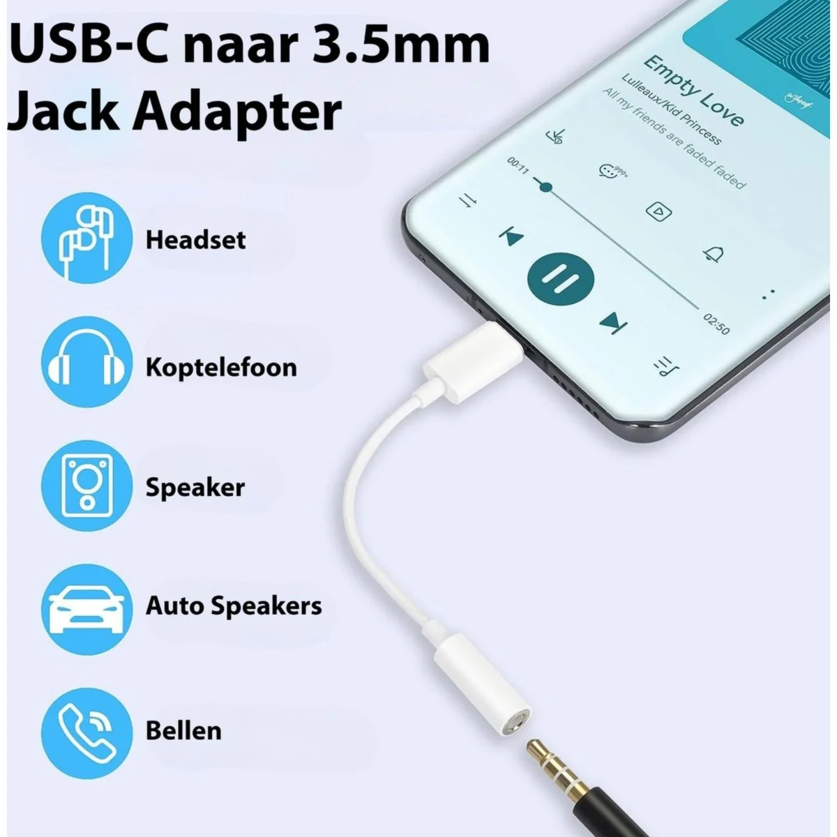 • 1 x 3.5 mm jack naar USB-C adapter met DAC chip